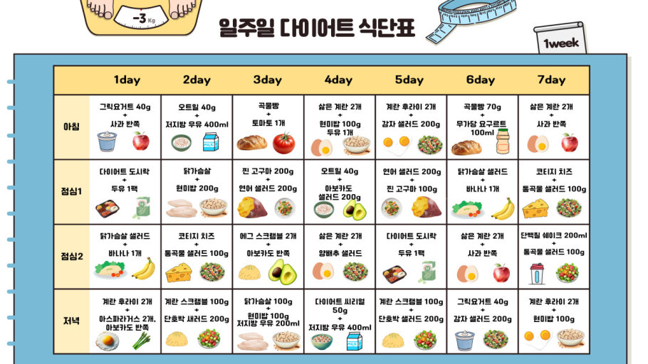 📅 예시 다이어트 식단표 (월~일, 7일 완성)