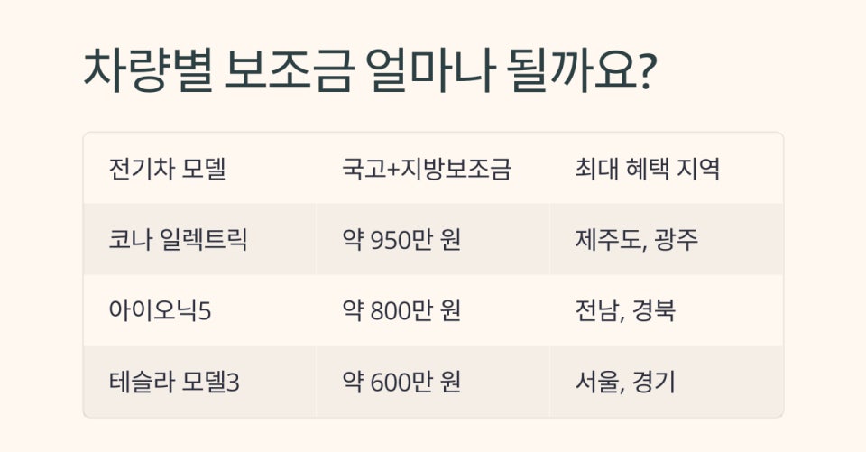 이처럼 전기차 보조금을 제대로 활용하면 구매 비용을 획기적으로 절감할 수 있습니다. 지방자치단체별 혜택을 비교·분석해 보조금을 최대한 끌어내는 것이 포인트입니다.