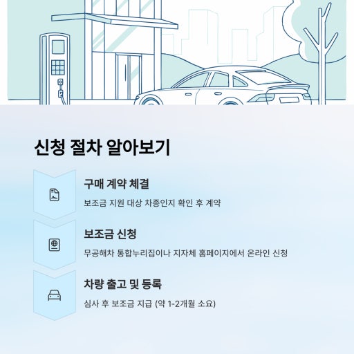 계약 전 딜러를 통해 ‘보조금 신청서’를 작성하고, 지자체에 제출해야 합니다. 온라인 신청이 가능한 지자체도 많으므로 각 지자체 홈페이지를 확인하세요.