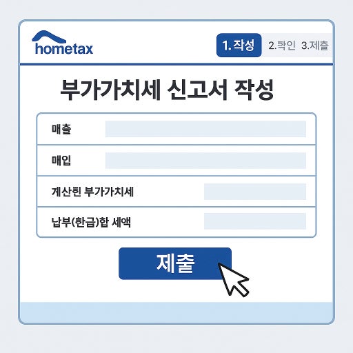 7월 부가세 신고 기간은 매년 7월 1일부터 7월 25일까지이며, 홈택스를 통한 전자신고가 권장됩니다. 절차는 다음과 같습니다: